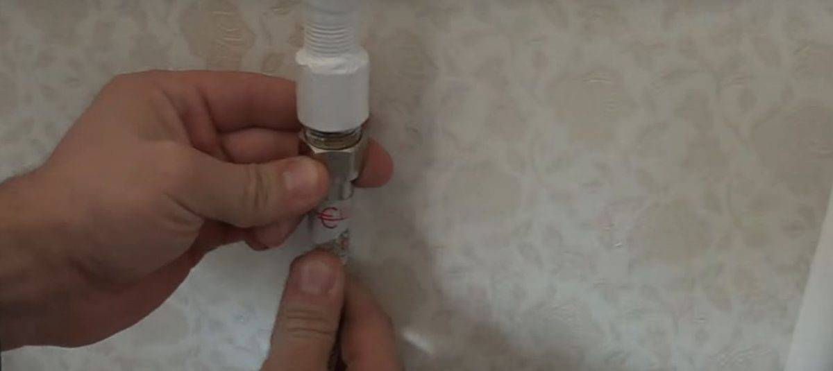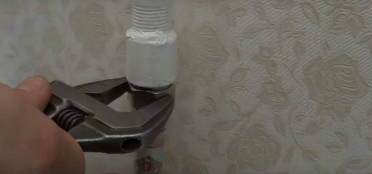 | 2. Производим монтаж шланга. Внутри должна быть паронитовая прокладка. После затягиваем ее разводным ключом. |