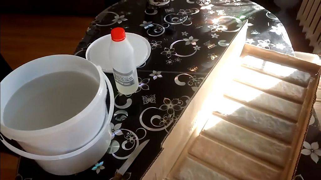 - Нанесите мыльный раствор на готовые плитки-шаблоны.