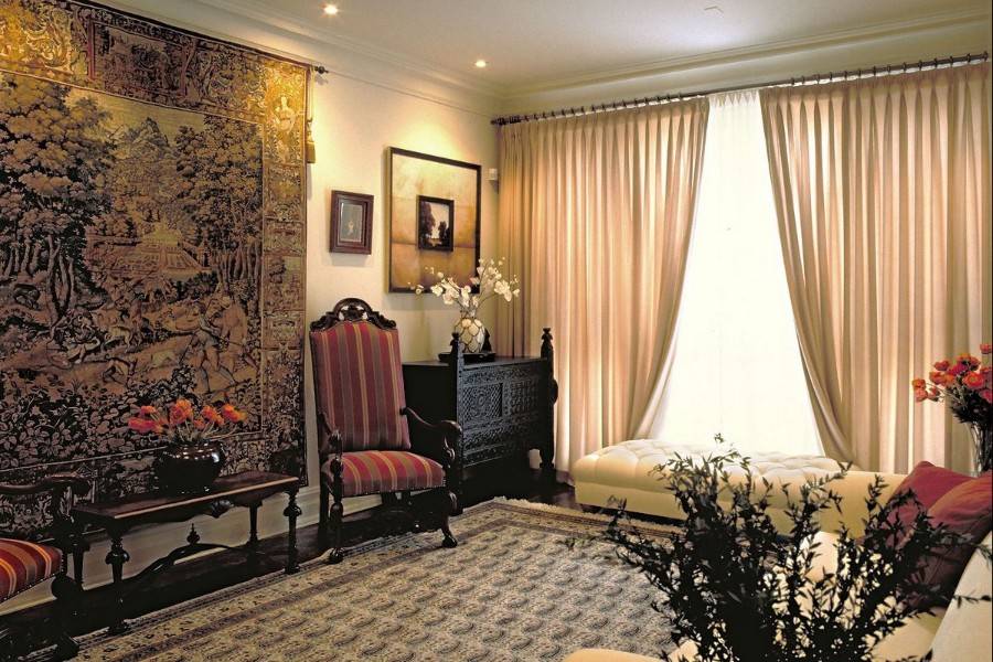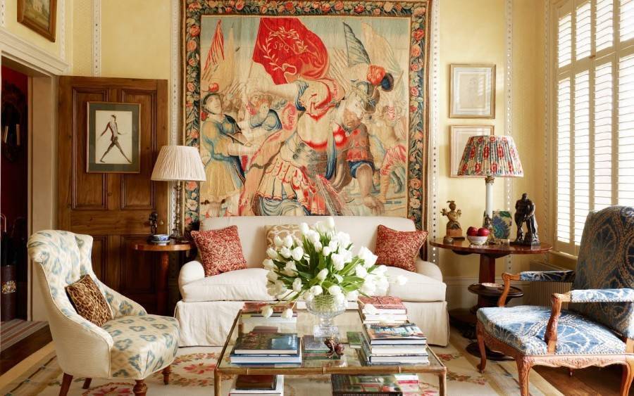 Для создания дорогого и шикарного интерьера, гобелен будет отличным связующим звеном между обивкой мебели, шторами и стенами.