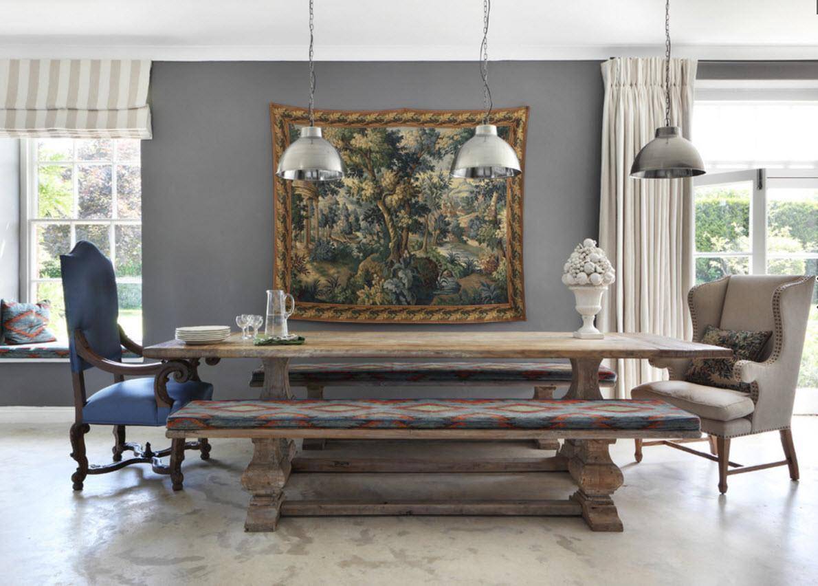 Иногда использование гобелена становится незаменимым декораторским приемом, позволяющим создать уют и ввести дополнительный цветовой акцент в дизайн интерьера