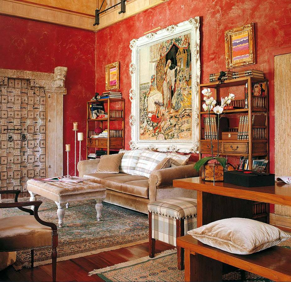 Восточный орнамент гобелена органично вписывается в солидный интерьер дома