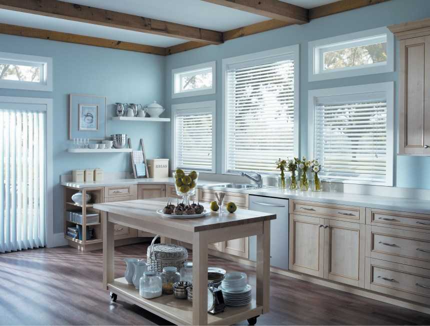 Главное правило применения голубого цвета в интерьере: так как этот цвет является холодным, то его нужно уравновешивать включением «тёплых» красок: бежевых, кремовых, коричневых, желтых и других тонов. На фото ниже прекрасный пример бежево-голубой кухни в интерьере в стиле прованс.