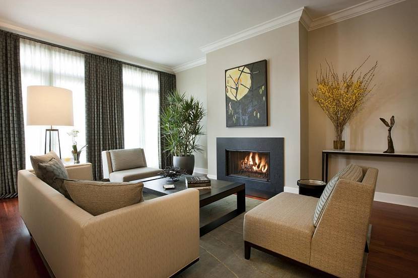 По сравнению с белым, теплый бежевый цвет смягчит и компенсирует строгий и холодный тон. Для интерьеров с окнами, выходящими на северную сторону, лучше выбрать именно такое сочетание с бежевым, чтобы восполнить недостаток солнечного света и тепла в интерьере.