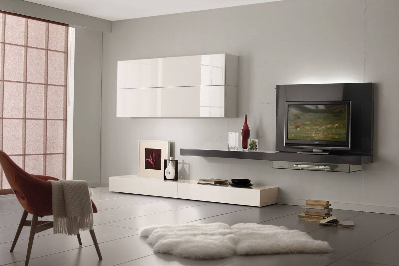 Часто данный стиль бывает оборудован стеклянными полками, придающими помещению невесомость. Используются данные модели для установки телевизоров и другой аудио и видео техники, а также для различных сувениров и красивых безделушек. Хорошо сочетаются с натяжными и разноуровневыми потолками, диодными подсветками и модной мягкой мебелью необычных современных форм.