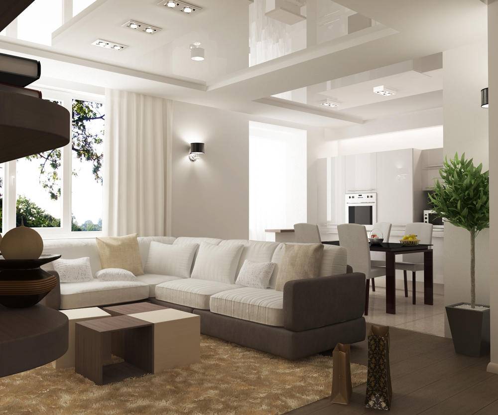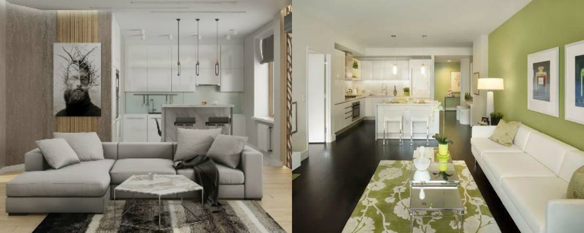 Идеальный фундамент для реализация других современных стилей дизайн в кухне-гостиной.