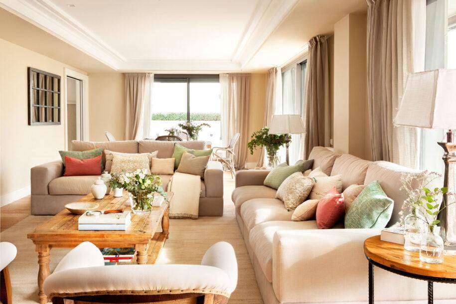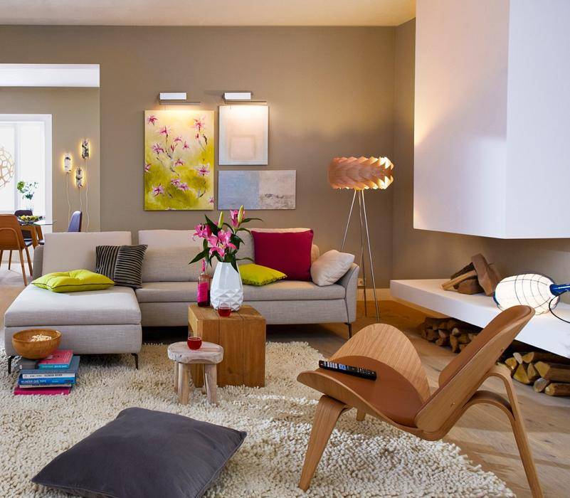 Какие цвета должны сочетаться с бежевыми стенами в гостиной?