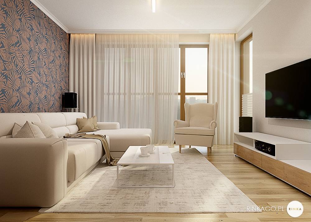Одно из самых удачных сочетаний для гостиной. Холодные голубые или васильковые оттенки в сочетании с теплым бежевым делают пространство легким и уютным. Комната зрительно увеличивается, создается ощущение наполненности воздухом и прохлады.