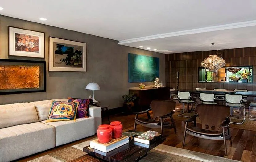 Дерево. Натуральная древесина может присутствовать в дизайне гостиной не только в качестве материала напольного покрытия, но и в элементах предметов мебели. Так, в интерьере, отделка которого выполнена преимущественно в светлых тонах, можно создать замечательный контраст, скажем, при помощи пары кресел из темного дерева.