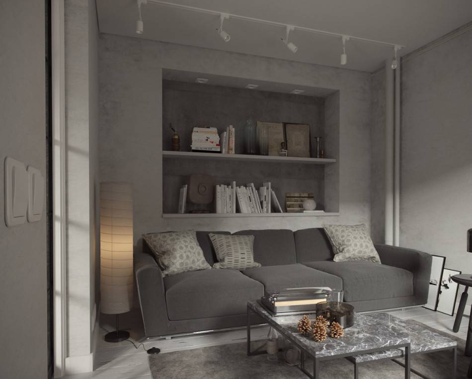 Жемчужно-серый цвет стен в интерьере гостиной в стиле «модерн»