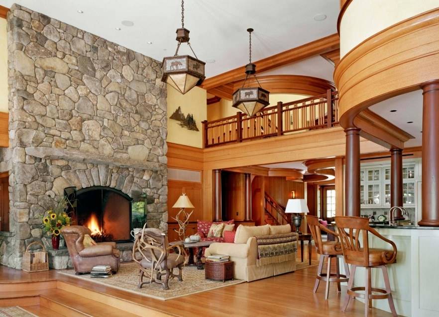 Вместо деревянного покрытия можно выбрать ламинат, который будет смотреться не менее эффектно. Кроме того, пол можно застелить ковром ручной работы.
