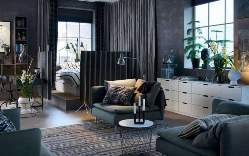 Ни одна гостиная ИКЕА в интерьере не обходится без текстильных аксессуаров, которые подчеркнут комфорт взрослых и детей. Часто гостиную ставят рядом со спальней, когда диван раскрывается и белье снимается с полок.