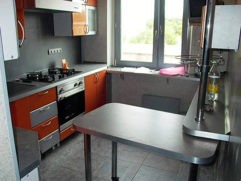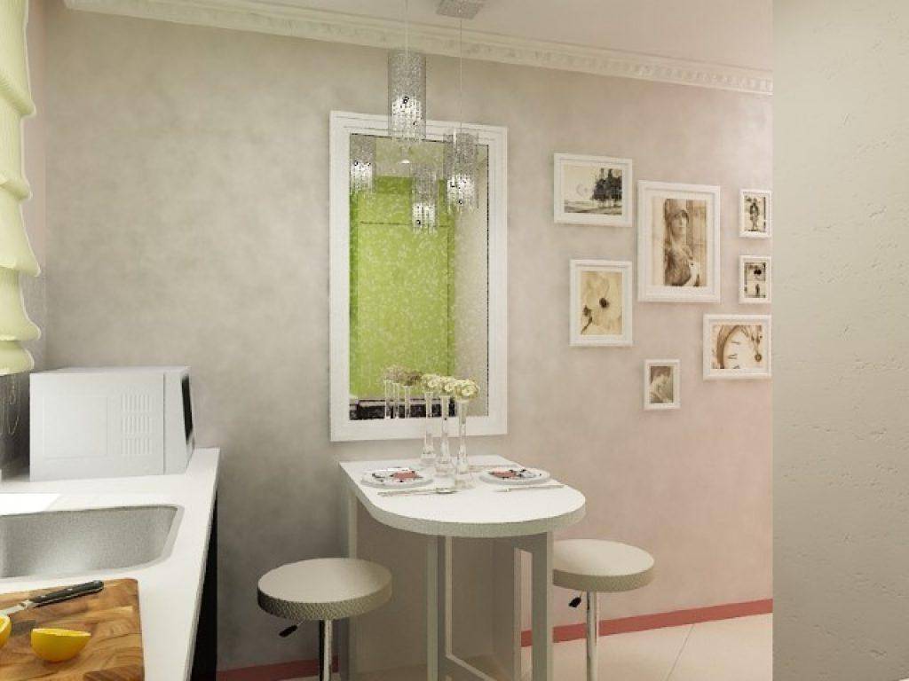 Мебель-трансформер также поможет сделать кухню эргономичнее. Обычно таким является стол: большую часть времени его поверхность прижата к стене, а перед приёмом пищи она поднимается. Стол можно обустроить и из подоконника.