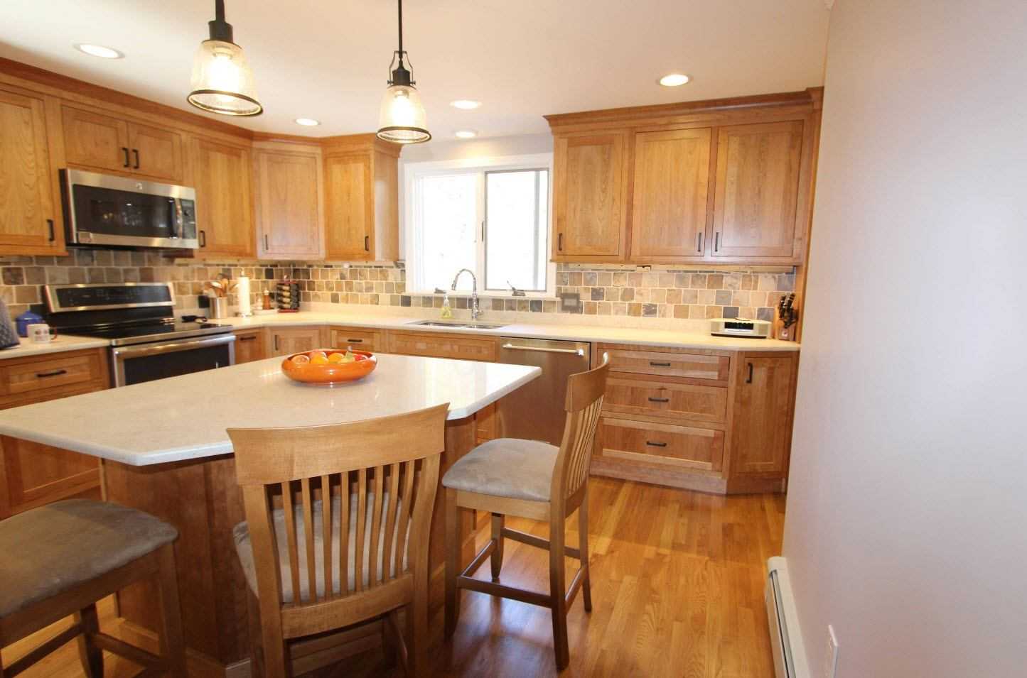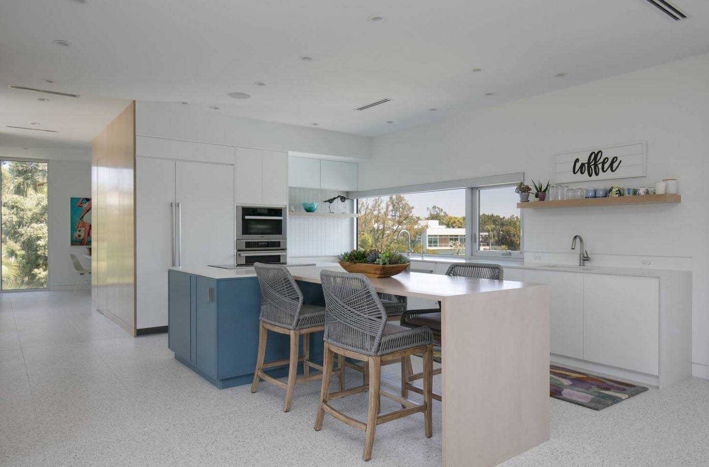 Много рабочих поверхностей для готовки, остров для завтраков и вместительные шкафы для хранения кухонной утвари