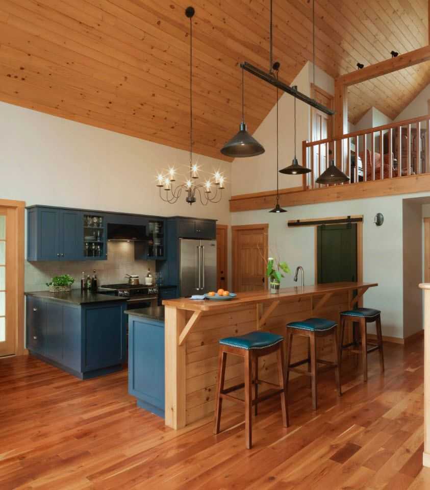 Остров освобождает больше полезного пространства. Такая планировка позволяет максимально рационально перемещаться по помещению кухни, затрачивая на это минимум времени. Заменить остров можно барной стойкой. Установите ее в центре комнаты или возле одной из стен. Она может выступить в качестве разделения сегментов.