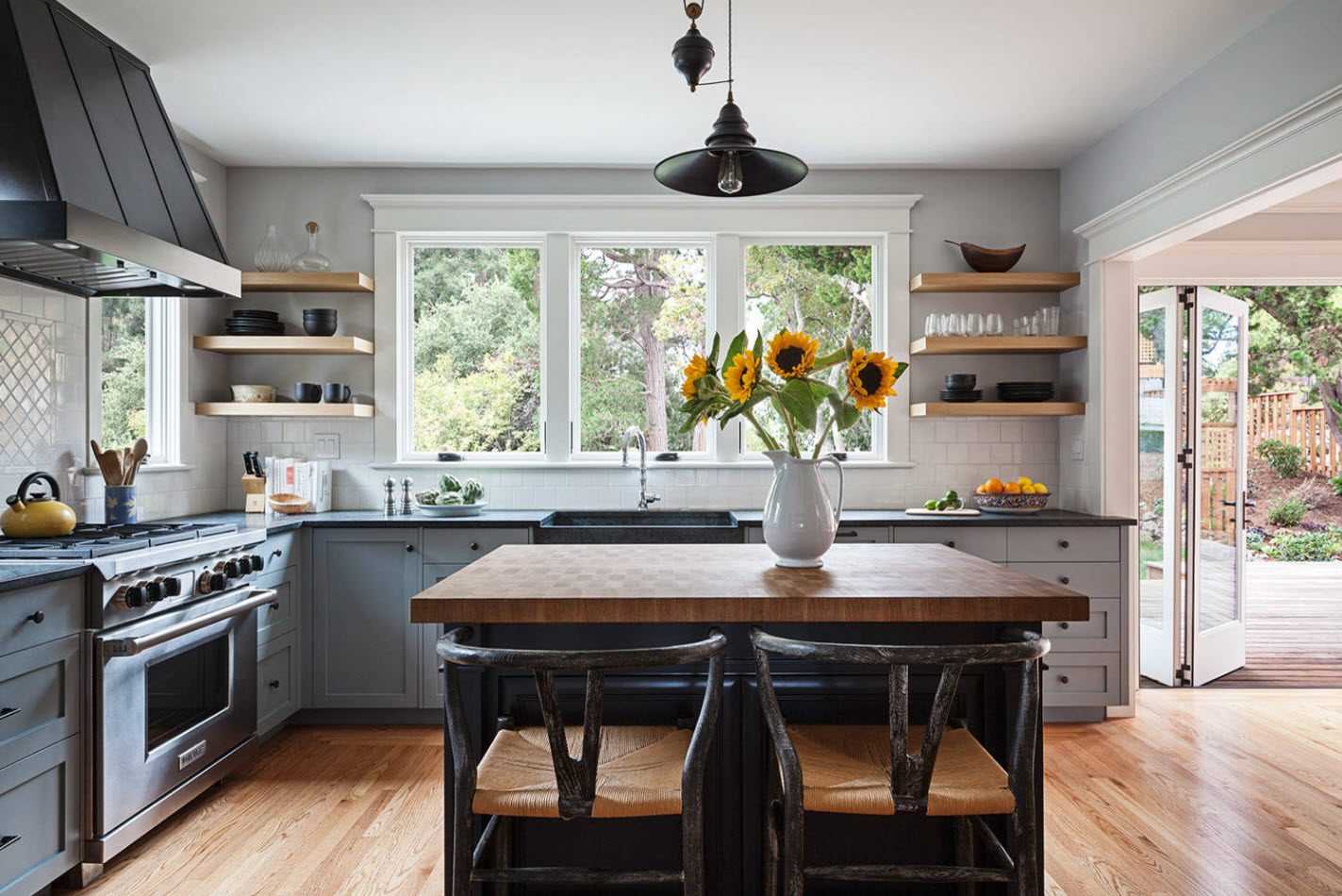 Стилеобразующим цветом скандинавского стиля признан белый. Он визуально расширяет пространство и наполняет кухню в хрущевке светом. Сочетается со светлыми породами дерева в соломенных или янтарных тонах, которые используют для столешницы или для обеденной группы. Черные детали, например, окрашенные газовые трубы, затирка на белой плитке, фурнитура, помогут расставить акценты.