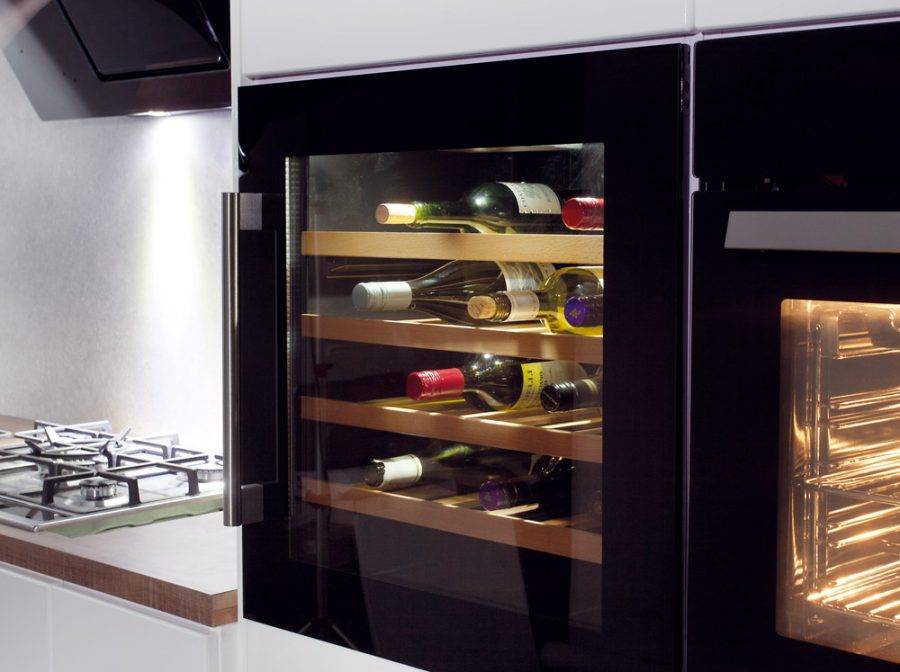 Отдельные модели специально рассчитаны на то, что их можно органично внедрить в кухонный гарнитур — в основном это относится к компрессорным холодильникам. Забор воздуха у них располагается снизу, поэтому их можно устанавливать в мебель без зазоров по бокам. Об этом критерии стоит задуматься, если вы покупаете винный шкаф на стадии установки кухонного гарнитура. Если же вы хотите приобрести холодильник для вина на уже оборудованную кухню и не планируете его встраивать, то этот момент для вас не будет имеет большого значения.