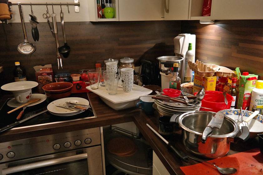 беспорядок на кухне, который предстаёт стопкой грязной посуды в раковине, давно не мытым холодильником и следами трёхдневной давности от рассыпанной ночью детской смеси может говорить о том, что вам свойственна депрессия, вы давно не уверены в себе и выбились из сил с желанием контролировать всё в своей жизни.