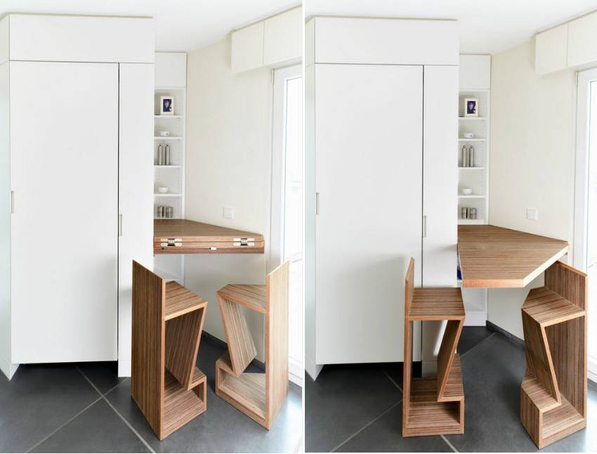 - остановитесь на раздвижной мебели: складные стулья, раздвижной пристенный столик.