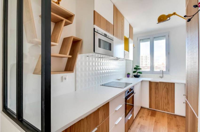 - Откажитесь от кухонной двери или используйте раздвижную.