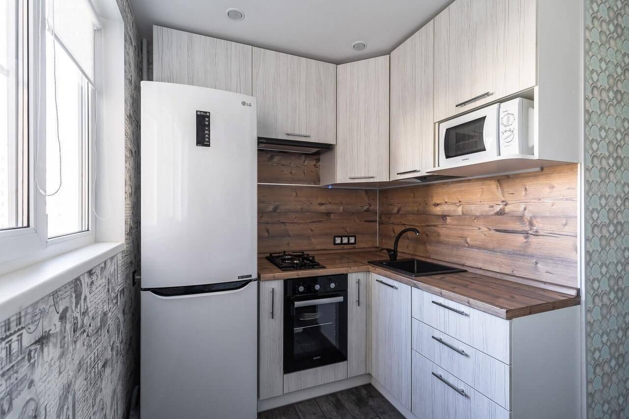 Особенности создания дизайна кухни в хрущевке с газовой колонкой и холодильником