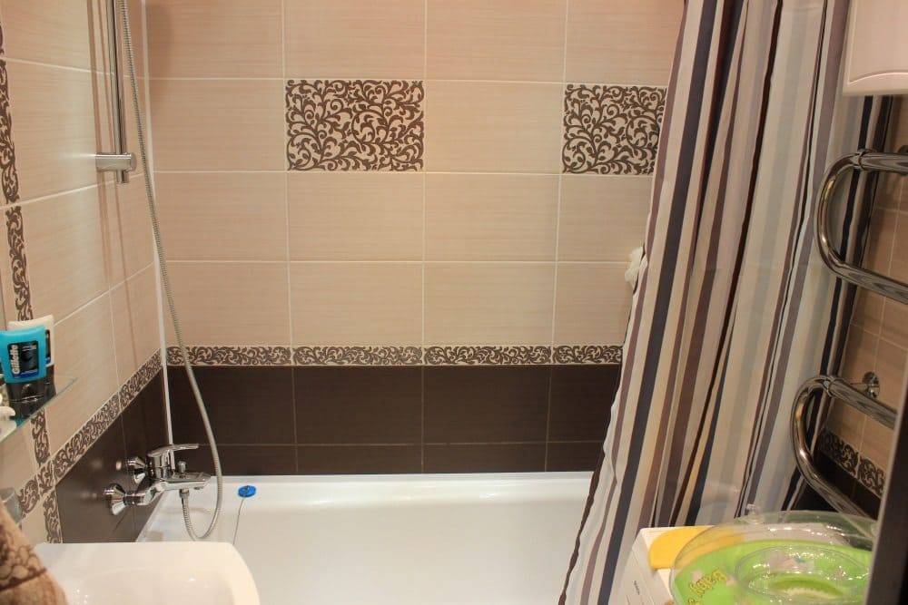 Бытует мнение, якобы в маленькой ванной размер плитки тоже должен быть небольшим. На самом деле размер плитки не так важен. Если на стену помещается 2 цельных — нормально. Главное правильная облицовка ею стен. Категорически нельзя укладывать прямоугольную плитку вертикально. Этот бред транслируют под соусом визуального увеличения комнаты и бла-бла. Нет, это ужасно, так делать нельзя.