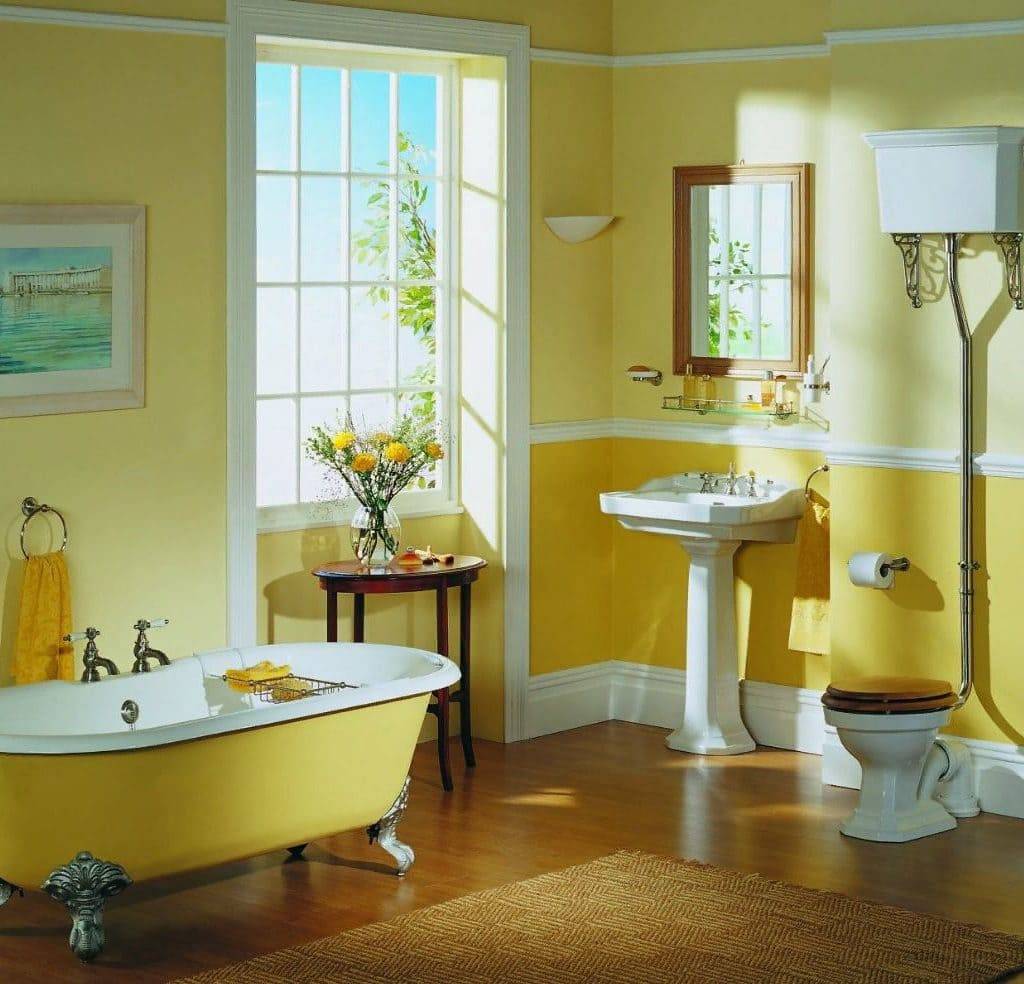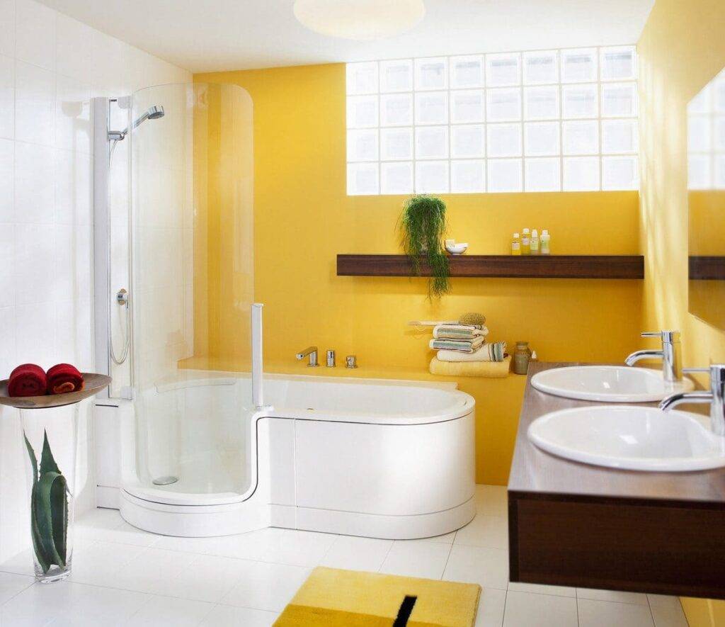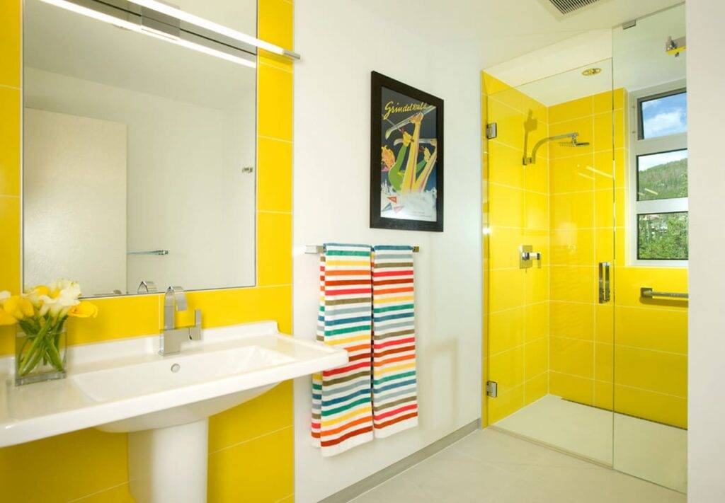 Дизайн в желтых или оранжевых тонах встречается не так часто, поскольку требует определенной смелости от владельца. Тем не менее использование этих цветов выглядит очень современно. Желтая ванная комната поднимает настроение, также дарит заряд энергии.