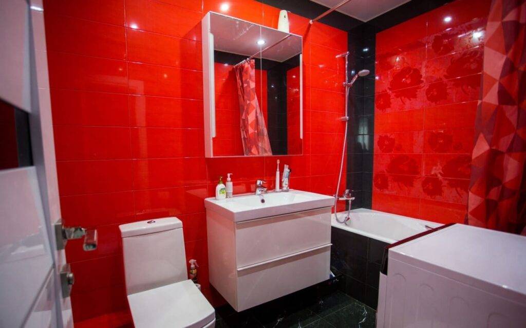 Оригинальное и очень смелое решение дизайна современной ванной. Этот оттенок поможет быстро проснуться и обеспечит заряд бодрости на весь день до самого вечера.