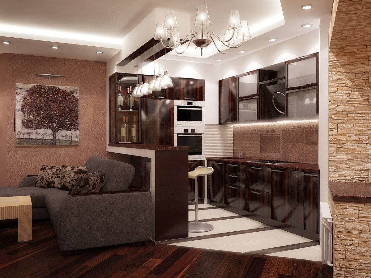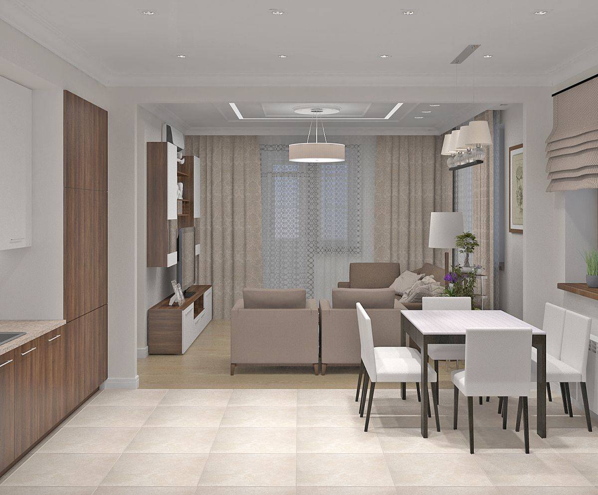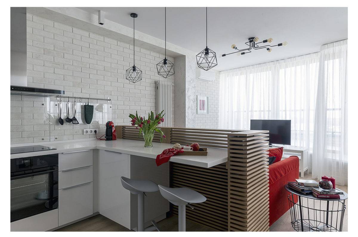 | Между кухней и комнатой | Это может оказаться полезным, если вы проживаете в квартире один или со своей второй половинкой. А если есть дети, то данные помещения лучше не объединять. |