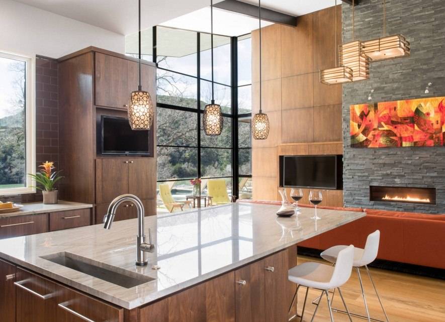 Рассмотрим и такой интересный дизайн кухни в частном доме – фото кухни-студии.