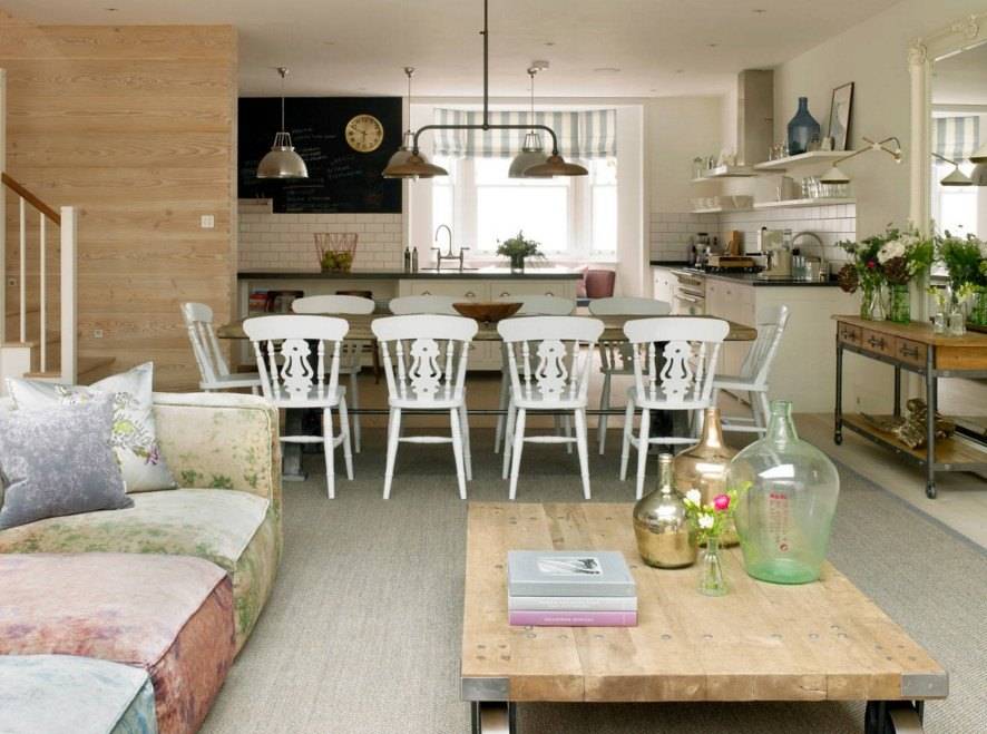 Если дом спроектирован так, что небольшая кухня соседствует с гостиной, столовой или прихожей, то эти комнаты можно объединить.