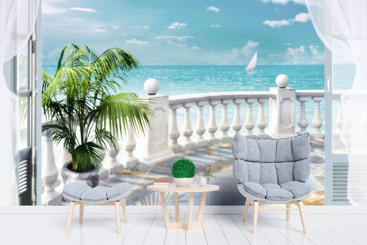 Если кухня большая, а вы хотите интерьер дополнить чем-нибудь оригинальным, стоит подумать о фотографических обоях. Отвлеченные рисунки не подходят — наиболее правильно подобрать те, на которых нарисованы пейзажи, свойственные Греции. Но если например вы согласились на фотографические обои с принтом, особенно актуально, чтобы остальной интерьер был сдержанным и простым — по-другому вы рискуете получить зрительно перегруженной помещение, стиль которого будет далек от греческого.
