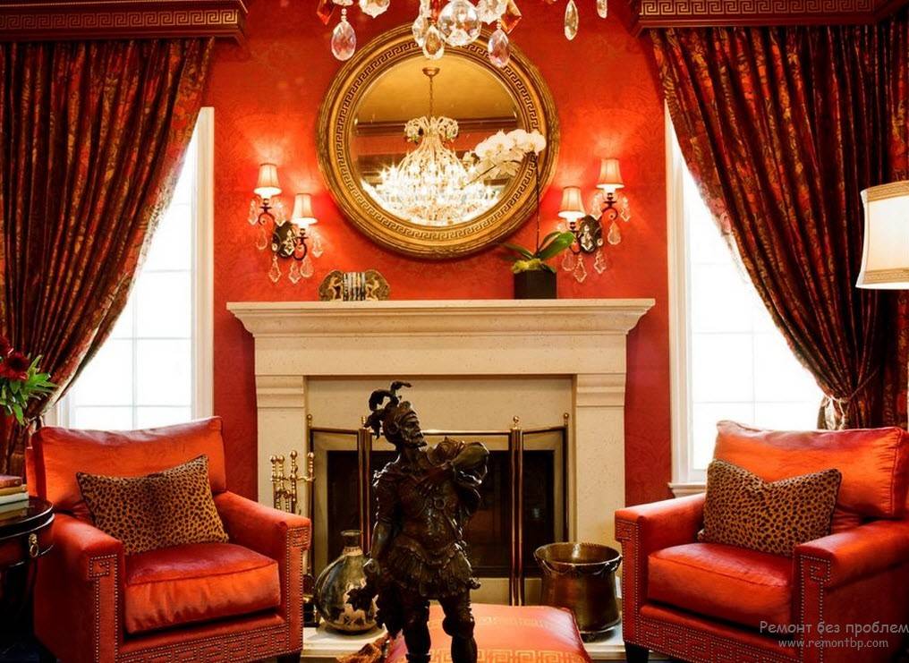 Аксессуары интерьера комнаты обычно представлены керамическими, мраморными амфорами, кувшинами, статуэтками античных героев,