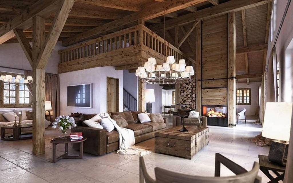 Как вариация в стиле шале, в качестве гостиной может использоваться застекленная веранда или огромный балкон. В этом случае домочадцы и гости могут свободно наслаждаться местными пейзажами потрясающей красоты.