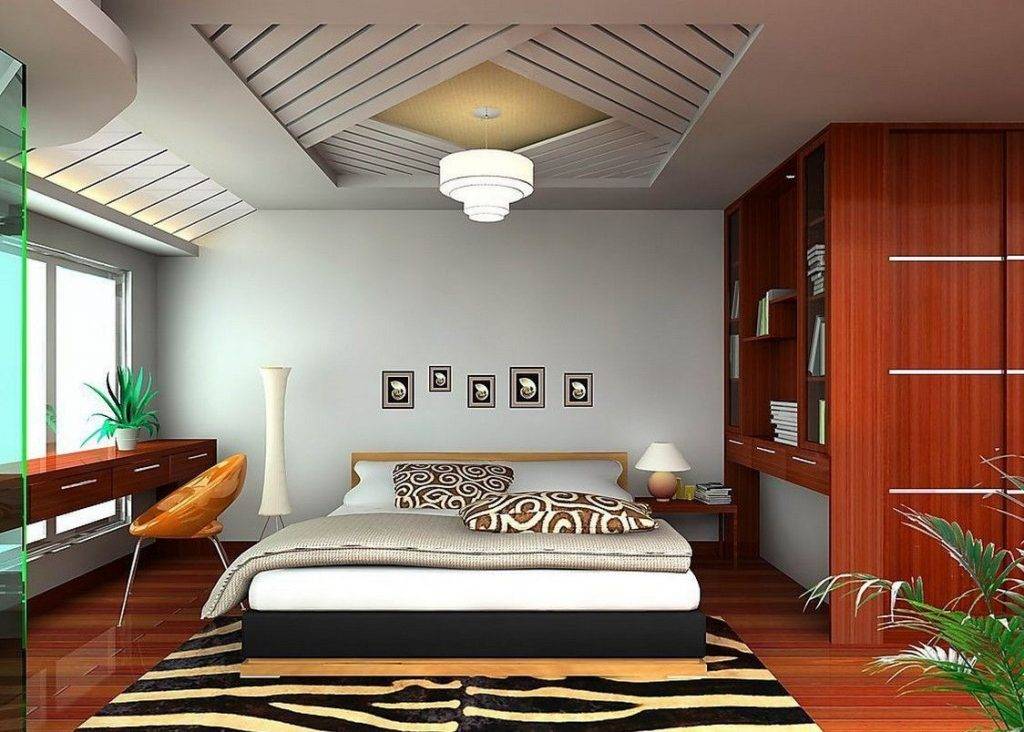 Для современной спальни лучшим выбором будет потолок белого цвета, как для интерьеров светлых, так и темных тонов. Вы можете использовать декоративные плинтусы, чтобы добавить в спальню стиля и индивидуальности.
