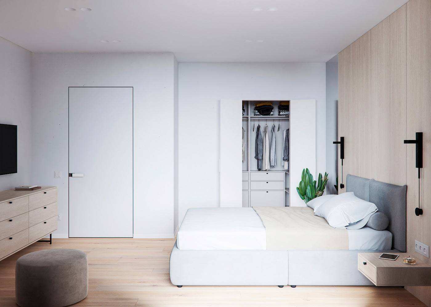 Гардеробы над кроватью меняют и украшают интерьер.