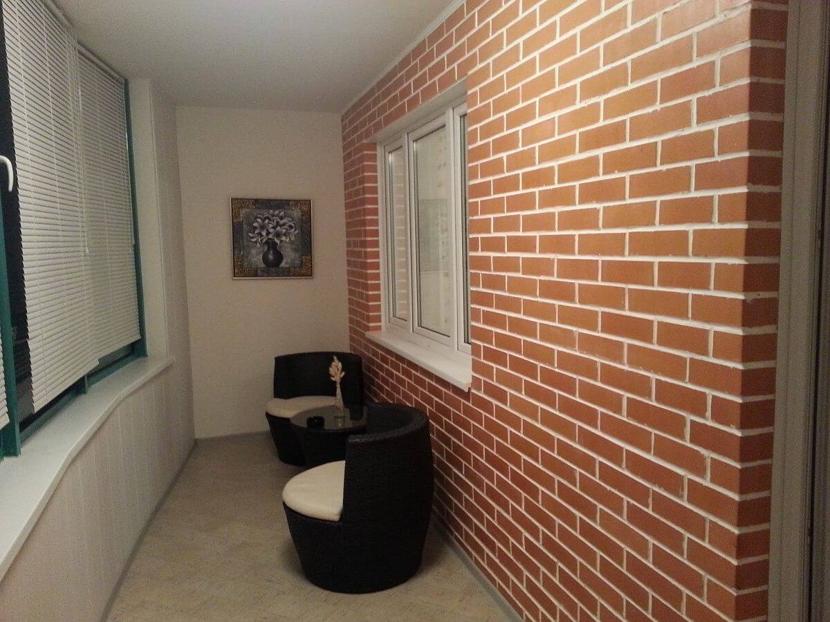 На фото стены, выложенные декоративным кирпичом на лоджии в хрущевке.