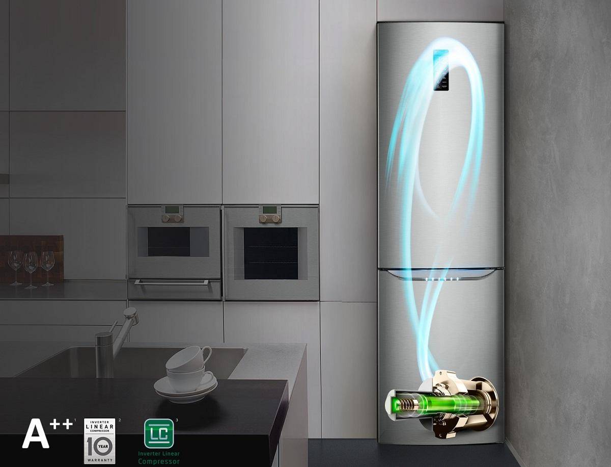 На протяжении многих лет холодильники оснащались компрессором, который при повышении температуры внутри прибора включался на полную мощность и работал, пока она не опускалась до определённого уровня. В отличие от предыдущего поколения его современный инверторный аналог обладает эффективной системой использования мощности для охлаждения внутреннего пространства.