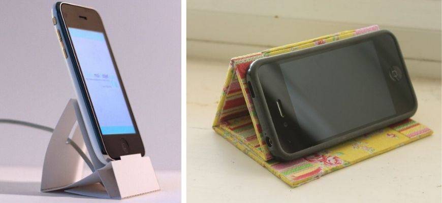 Все описанные способы изготовления аксессуара не займут у вас больше 15 минут. При этом какие-то специальные приспособления или инструменты не понадобятся, что позволяет получить надежную, удобную и бюджетную подставку, которая прослужит долгое время.