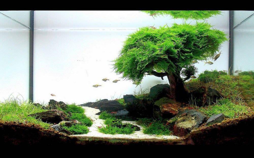 Дерево можно ставить в центр аквариума. Есть инструкции, где более подробно описываются все манипуляции, но многое додумывается самим мастером прямо в процессе. Например, из песка и гальки можно сделать гору прямо в аквариуме, где и будет расти дерево, смотрится экзотично и очень уж по-японски.