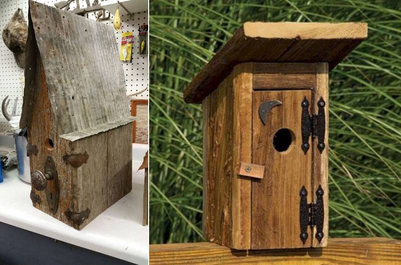 Скворечник — туалет, можно улыбнуться? Пожалуйста! Однако в открывающейся передней стенке есть большая польза — скворечник можно легко почистить перед заселением очередной пары.