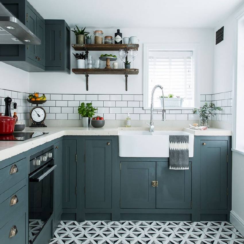 Особенно важно, чтобы отделка сочеталась со столешницей и подвесными шкафчиками
