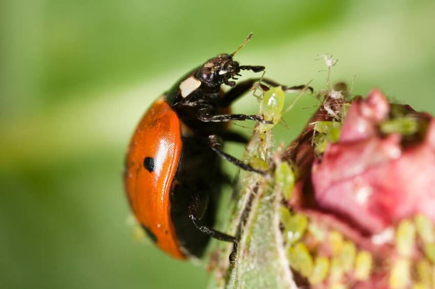 Божья коровка и во взрослом состоянии и в стадии личинки — неутомимый хищник в борьбе против тли