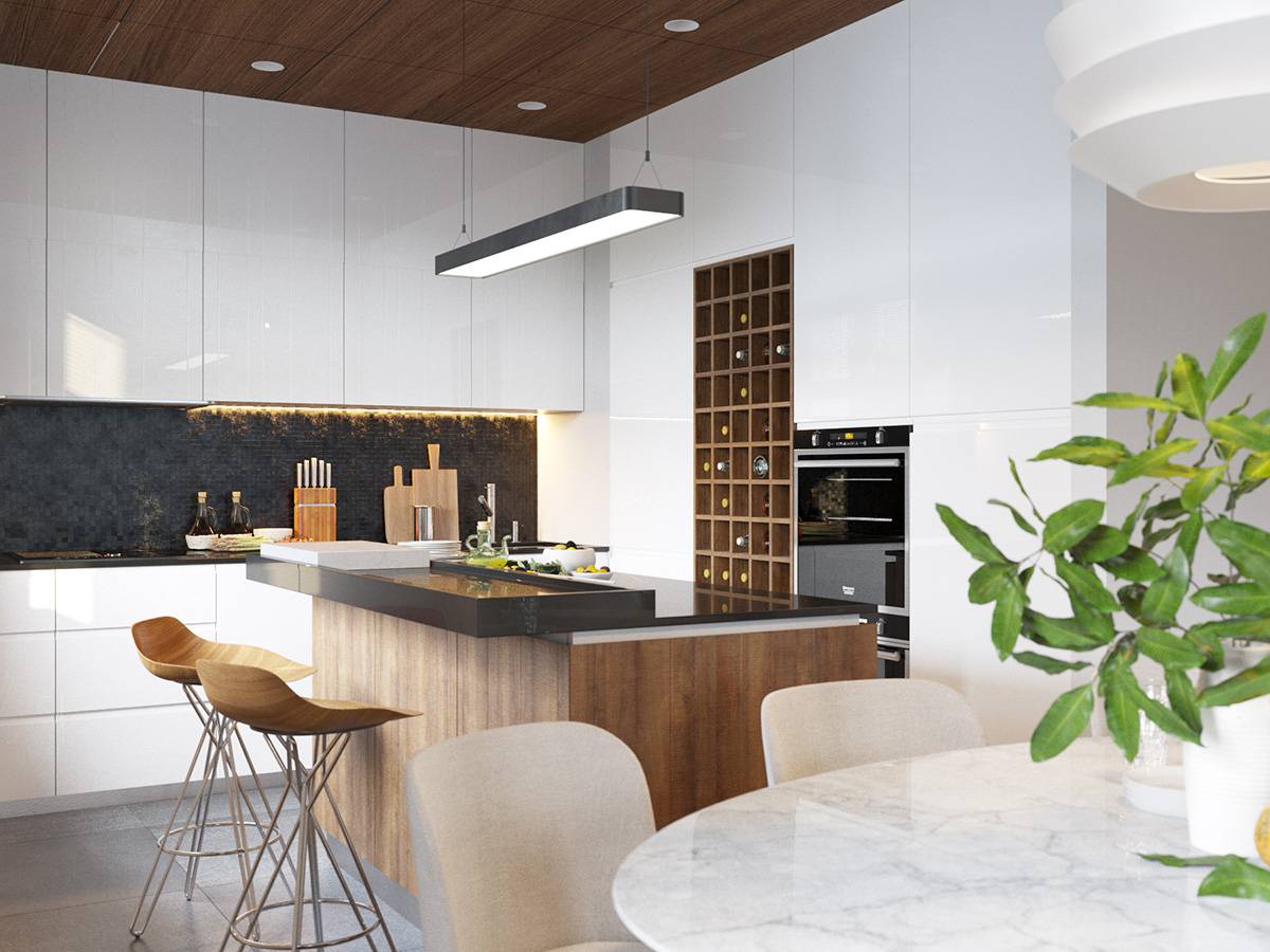 Кухня: если фасады глянцевые, то лучше белые (меньше видны ляпы), а фартук и столешница лучше матовые. Не делайте «масло масляное», глянцевое всегда что-то одно, иначе ну тут просто нужно принять — это не красиво.