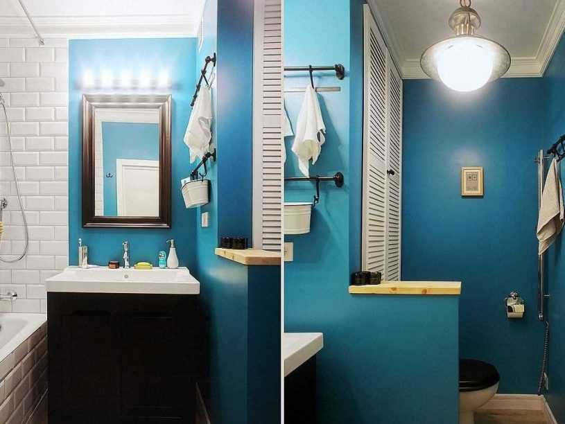 Вариант, который не требует вообще никаких материалов – это краска. Производители предлагают массу вариантов влагостойких красок, которые подойдут для ванной комнаты.