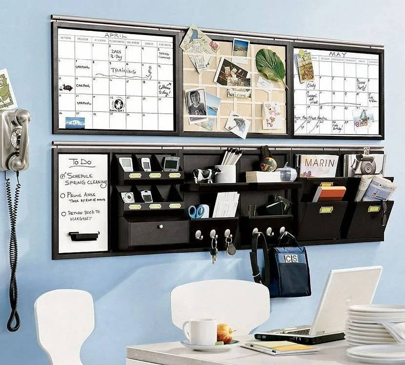 Доска-органайзер. Также неплохая идея для хранения текущей документации, подходящая тем, кто работает за столом; стикеры и чеки всегда будут под рукой. В продаже имеются самые разные модели, от пробковых до магнитных, со всевозможным дизайном.
