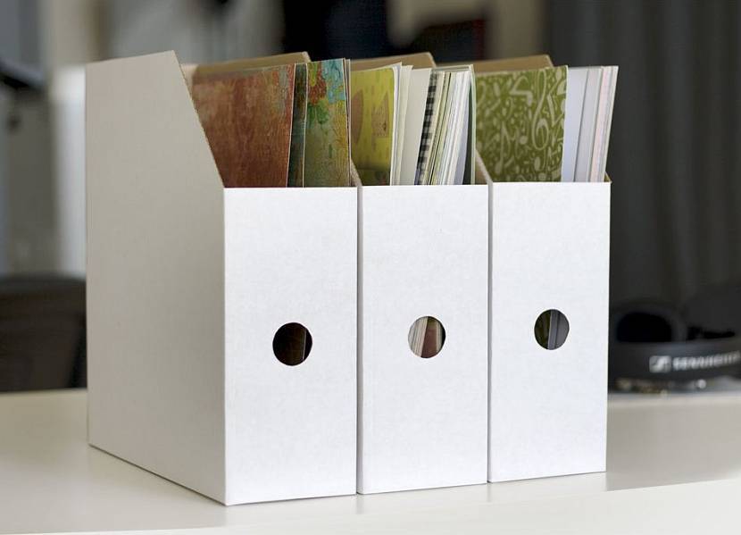 Картонные и пластиковые коробки. Нужны, если документов действительно много. Выбирайте такие модели, где папки можно хранить вертикально; папки, сложенные стопкой — не самый практичный способ.
