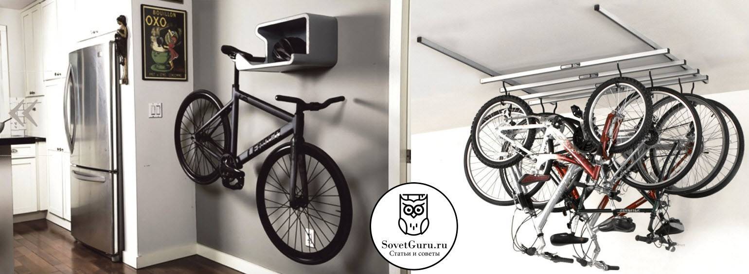 Хранение велосипеда зимой в квартире может потребовать многих усилий. Самый удобный вариант – крюк в стене или специальная штанга. Велосипед, хранящийся в менее всего подвержен износу. Также это бережет шины и предупреждает деформацию колес. Остается только найти свободную стену.
