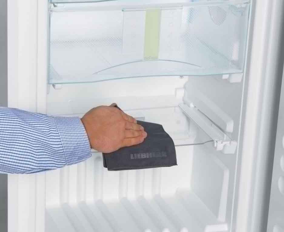 Перед уборкой обязательно отключите агрегат от электрического питания. Вымыть холодильную камеру можно даже при помощи средства для мытья посуды. Достаточно добавить немного моющей жидкости в теплую воду и хорошенько протереть поверхности, после чего ополоснуть чистой водой и вытереть сухим кухонным полотенцем.