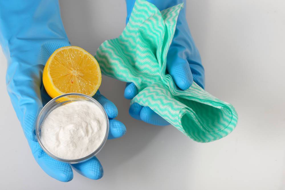 - достать из шкафчиков все пакеты и банки, промыть деревянные и пластиковые поверхности мыльно-содовым раствором, протереть дезинфицирующим раствором (1 л воды + 1 ст. л. уксуса), подождать, пока всё просохнет;