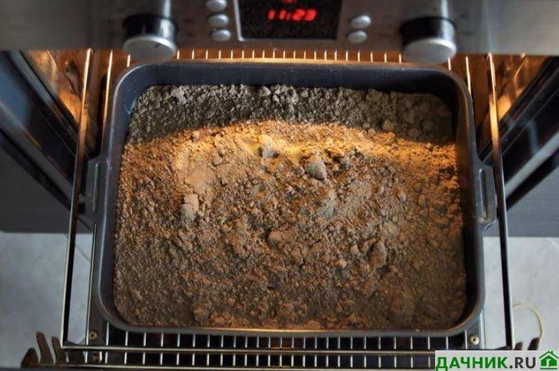 | Прокаливание | Смысл процедуры в прогреве субстрата высокими температурами – можно прожарить на сковородке, пропечь в духовом шкафу, в микроволновке. При прокаливании почвосмесь рассыпают пластом 5-6 см на противень и прогревают полчаса при 70-90°С. Минус прокаливания: землесмесь очищается от всех микроорганизмов, как полезных, так и вредных. Поэтому субстрат утрачивает свои полезные характеристики и функции. Понадобится время, чтобы полезные микробы снова появились в прокалённой грунтосмеси. |